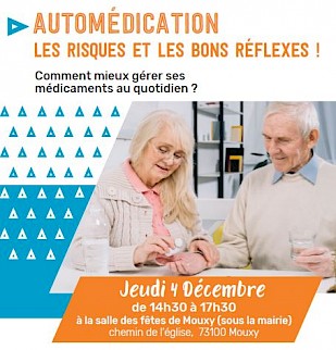 « Automédication : les risques et les bons réflexes !», le Jeudi 4 Décembre de 14h30 à 17h30 à la salle des fêtes de Mouxy