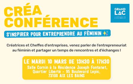 Grand Lac propose un atelier « Créa Conférence » en lien avec CitésLab : le mardi 10 mars 2026 à la Résidence Joseph Fontanet (Salle Cornin).