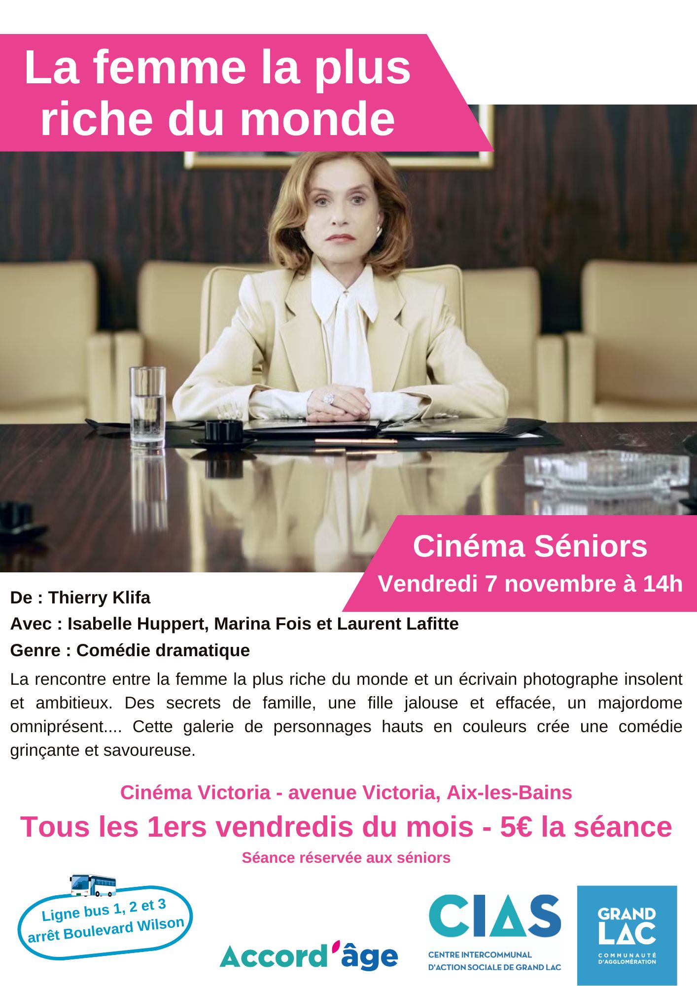 La prochaine séance Cinéma Séniors propose le film « La Femme la plus riche du monde » :