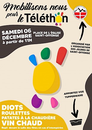 L'association des jeunes de Saint-Offenge vous attend Samedi 06 Décembre sur la place de l’église à partir de 11h pour la vente de ses traditionnels diots, roulettes de porc et pommes de terre. Vous pourrez également vous réchauffer grâce à leur vin chaud.