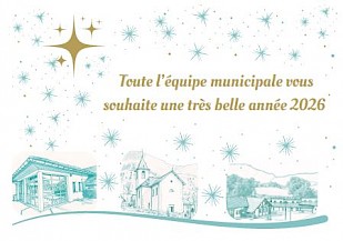 Vous êtes conviés à la cérémonie des voeux pour cette nouvelle année, le 17 Janvier 2026 à 17h45 à la salle des fêtes.